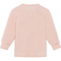 Umber is een lichtroze Merino wollen babyjas met een knoopsluiting aan de voorkant. Het heeft een omslag bij de mouwen.