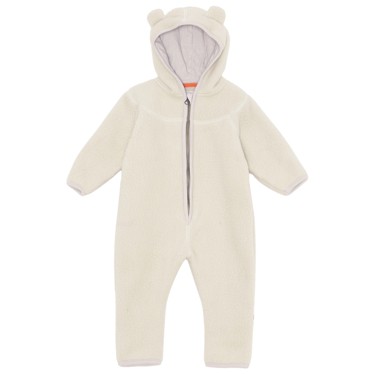 Umeko is een baby fleecepak in het gebroken wit. Het pakje heeft een ritssluiting, een capuchon en kleine opgenaaide oren. Molo's fleecepakjes zijn warm en isolerend. Het fleecepak kan alleen worden gebruikt of als extra laag onder een skipak op echt koude dagen. De maten 56-74 hebben slofjes, terwijl de maten 80-92 dat niet hebben.