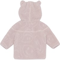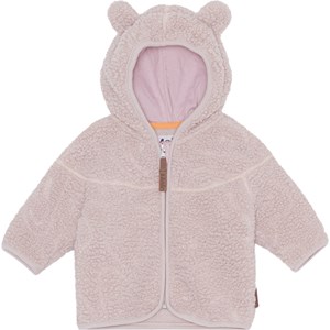 Roze fleecejasje voor peuters met handige ritssluiting en een capuchon met aangenaaide kleine oortjes. Het fleecejasje heeft isolerende eigenschappen en kan daarom op zichzelf gedragen worden of als een extra laag onder buitenkleding op de koudste dagen.
