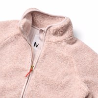 Roze zacht fleecejas gemaakt van gerecycled polyester met bijpassende ribboorden en gevoerd met zacht katoen. De jas heeft een hoge kraag, een rits aan de voorkant, twee voorzakken met ritssluiting, een normale pasvorm en werkt zowel op zichzelf als als extra laag onder een jack.