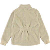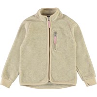 Unna is een lichtgele fleecejas met roze stiksels en een ritssluiting. Het heeft een enkele borstzak en duimgaten. De fleece jassen van Molo zijn warm en houden je geïsoleerd tegen de kou. Draag het alleen of, op erg koude dagen, als extra laag onder een andere jas.