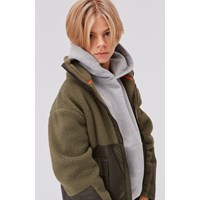 Utha is Molo's nieuwe donkergroen fleece jas met grote opgestikte zakken. De jas heeft een hoge kraag en een ritssluiting aan de voorkant. Dit Molo-product is 100% gerecycled en gemaakt van gerecycled polyester. Het gerecyclede polyester is gemaakt van gebruikte plastic flessen en ander afval. De productie van gerecycled polyester vereist minder hulpbronnen en stoot minder CO2 uit, waardoor Molo's fleece de duurzame keuze is.