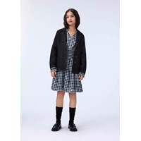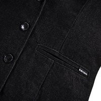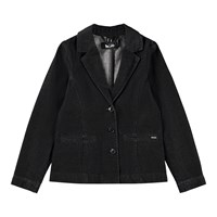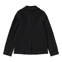 Donkergrijze denim blazer van biologisch katoen. Klassieke pasvorm met knoopsluiting, voorzakken en een split aan de achterkant.