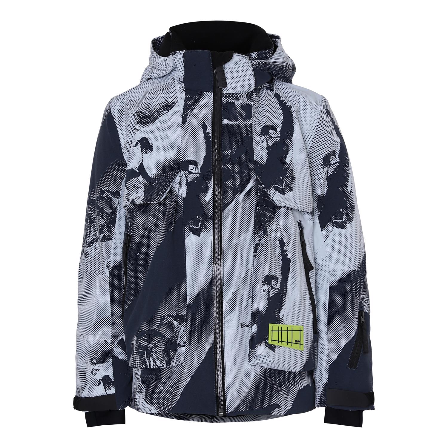 Alpine is een functionele en waterdichte ski jas met een snowboarder print in grijze tinten. Het heeft een afneembare capuchon, een ritssluiting aan de voorkant en grote, ruime zakken aan de zijkanten. Het heeft verstelbare mouwopeningen met een goede windflap met duimgaten en een reflecterende streep op de achterkant. De jas is gemaakt van een wind- en waterdichte kwaliteit die ademend is. Het is gevoerd met 3M ™ Thinsulate ™ en heeft hoogwaardig fleece op kwetsbare plaatsen en getapete naden. Dit product heeft een waterbestendige, PFC-vrije oppervlaktebehandeling (bevat geen PFOS, PFOA, enz.). De waterkolomdruk en het ademend vermogen zijn verbeterd en zijn nu 15.000 mm voor de waterkolomdruk en het ademend vermogen: 15.000 g / m2 / 24 uur.