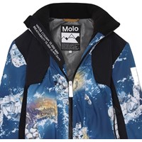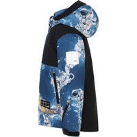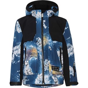 Alpine is een blauwe, functionele en waterdichte ski-jas met astronautenprint. Alpine is perfect voor extreem koude dagen maar ook voor gewone winterdagen. Het hoge ademende vermogen helpt bij het reguleren van de lichaamstemperatuur van het kind, zodat het niet te koud of oververhit raakt. Op warmere winterdagen kan het kind de jas met een dunne onderlaag dragen en op extreem koude dagen kan je een extra laag aantrekken. Alpine is ook een goede keuze voor minder actieve momenten. De jas heeft een afneembare capuchon, een ritssluiting aan de voorkant, grote ruime zakken en verstelbare manchetten met sneeuwflappen met duimgaten en een reflecterende streep op de achterkant. De jas is gemaakt van wind-, waterdichte en ademende materialen. De buitenstof is gemaakt van 45% gerecycled polyester, de 3M™ Thinsulate™ voering is gemaakt van 83% gerecycled polyester en de binnenstof is gemaakt van 100% gerecycled polyester. Dit product heeft een waterbestendige, PFC-vrije oppervlaktebehandeling (Bevat bijvoorbeeld geen PFOS, PFOA, etc). Waterkolomdruk: 15.000 mm. Ademend: 15.000 g/m2/24u.