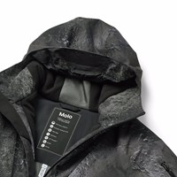 Wind- en waterdichte winterjas gemaakt van gerecycled polyester met een reflecterende print van de ruwe structuren van de maan die oplicht wanneer het licht erop valt. De jas heeft een gevoerde capuchon, waterdichte ritsen, een zak op de mouw voor een skipas en een binnenzak voor extra opslag. De jas heeft een windflap rond de taille, klittenband rond de polsen en mouwopeningen met duimgaten, waardoor de sneeuw, wind en water buiten blijven. Daarnaast is de jas gevoerd met fleece en met 3M™ Thinsulate™ en heeft het een reflecterende tekst om de zichtbaarheid in het verkeer te vergroten.