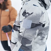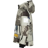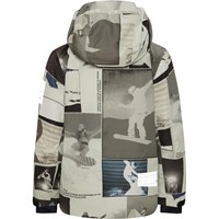 Alpine is een beige functionele en waterdichte ski-jas met een print van snowboarders. Het heeft een afneembare capuchon, een ritssluiting aan de voorkant, grote en ruime zijzakken, verstelbare mouwopeningen met sneeuwflappen en duimgaten. De jas heeft een reflecterende streep op de achterkant. De voering en tussenvoering zijn gerecycled en gemaakt van gerecycled polyester. Alpine is ademend en wind- en waterdicht en heeft getapete naden. Dit product heeft een waterbestendige, PFC-vrije oppervlaktebehandeling (bevat bv. geen PFOS, PFOA, enz.). De waterkolomdruk en het ademend vermogen zijn sterk verbeterd en zijn nu: waterkolomdruk: 15.000 mm en ademend: 15.000 g / m2 / 24 uur.