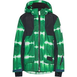 Alpine is een winterjas in een klasse apart. Het is de perfecte jas voor skiën. Het heeft vele eigenschappen, zoals extreem hoge waterkolomdruk en ademend vermogen, en met zijn prachtige prints en kleuren is Alpine elk jaar een echte winnaar. Molo sluit geen compromissen op details als het gaat om deze winterjas. Het is natuurlijk ook gemaakt van verantwoord gerecyclede materialen. Deze Alpine is in een groene tie-dye print die prachtige strepen creëren.