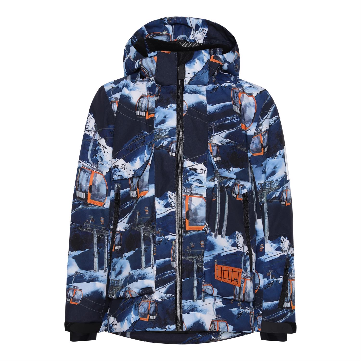 Alpine is een blauwe functionele en waterdichte ski-jas met een print van skilifts. Het heeft een afneembare capuchon, een ritssluiting aan de voorkant, grote en ruime zijzakken, verstelbare mouwopeningen met sneeuwflappen en duimgaten. De jas heeft een reflecterende streep op de achterkant. De voering en tussenvoering zijn gerecycled en gemaakt van gerecycled polyester. Alpine is ademend en wind- en waterdicht en heeft getapete naden. Dit product heeft een waterbestendige, PFC-vrije oppervlaktebehandeling (bevat bv. geen PFOS, PFOA, enz.). De waterkolomdruk en het ademend vermogen zijn sterk verbeterd en zijn nu: waterkolomdruk: 15.000 mm en ademend: 15.000 g / m2 / 24 uur.