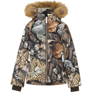 Castor is een gevoerde en waterdichte winterjas met een print van slapende dieren. Castor is perfect voor extreem koude dagen maar ook voor gewone winterdagen. Het hoge ademende vermogen helpt bij het reguleren van de lichaamstemperatuur van een kind, zodat het niet te koud of oververhit raakt. Op warmere winterdagen kan het kind de jas met een dunne onderlaag dragen en op extreem koude dagen kan je een extra laag aantrekken. Castor is ook een goede keuze voor minder actieve momenten.De jas heeft een afneembare capuchon met rand van imitatiebont (ook afneembaar), een afgedekte ritssluiting, verborgen zakken, zichtbare reflectoren aan de zijkant van de mouwen en op de achterkant. De jas is gemaakt van wind-, waterdichte en ademende materialen. De buitenstof is gemaakt van 45% gerecycled polyester, de 3M™ Thinsulate™ voering is gemaakt van 78% gerecycled polyester en de binnenstof is gemaakt van 100% gerecycled polyester. Dit product heeft een waterbestendige, PFC-vrije oppervlaktebehandeling (Bevat bijvoorbeeld geen PFOS, PFOA, etc). Waterkolomdruk: 15.000 mm. Ademend: 15.000 g/m2/24u.