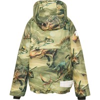Castor is een winterjas in een klasse apart. Het heeft vele eigenschappen, zoals een extreem hoge waterkolomdruk en ademend vermogen, en met zijn prachtige prints en kleuren is Castor elk jaar een echte winnaar. Molo sluit geen compromissen op details als het gaat om deze winterjas. Het is natuurlijk ook gemaakt van verantwoord gerecyclede materialen. Deze Castor is in het groen met een dinosaurus print.