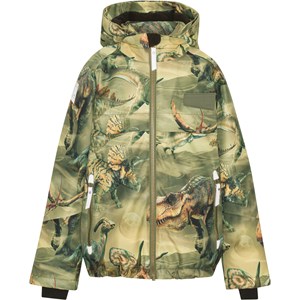 Castor is een winterjas in een klasse apart. Het heeft vele eigenschappen, zoals een extreem hoge waterkolomdruk en ademend vermogen, en met zijn prachtige prints en kleuren is Castor elk jaar een echte winnaar. Molo sluit geen compromissen op details als het gaat om deze winterjas. Het is natuurlijk ook gemaakt van verantwoord gerecyclede materialen. Deze Castor is in het groen met een dinosaurus print.