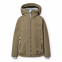 Wind- en waterdichte donkergroene winterjas gemaakt van gerecycled nylon. De jas heeft een afneembare gevoerde capuchon, een ritssluiting, ritszakken met fleece, ribboorden ronde de mouwen en elastiek onderaan om effectief te helpen tegen de wind. Aan de achterkant zit een grote reflector die de zichtbaarheid in het verkeer vergroot. Verder is de jas gevoerd met fleece en met 3M™ Thinsulate™.