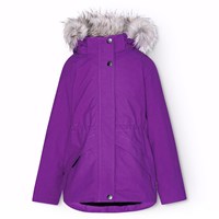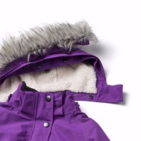 Paarse wind- en waterdichte winterjas van gerecycled polyester voor een koude winter. De jas heeft een afneembare gevoerde capuchon met een afneembare imitatiebontkraag en een waterdichte rits met een flap die sneeuw, wind en water buiten houdt. Er zit ook een grote reflector op de achterkant om de zichtbaarheid in het verkeer te vergroten. De jas heeft gevoerde voorzakken en een verstelbare elastische tailleband, waardoor de jas mooi aansluit op het lichaam. De mouwen hebben geribbelde manchetten die effectief wind, sneeuw en regen buiten houden en ervoor zorgen dat handschoenen op hun plaats blijven. De jas is gevoerd met 3M™ Thinsulate™, wat zorgt voor meer bewegingsvrijheid voor je kind.
