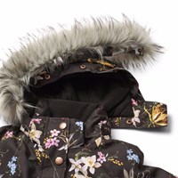Zwarte wind- en waterdichte winterjas gemaakt van gerecycled polyester met een print van kleurrijke bloemen. De jas heeft een afneembare gevoerde capuchon met imitatiebont, rits met flap, gevoerde ritszakken, sneeuwvanger in de mouwen en een verstelbare elastiek in de taille die zorgt voor een aansluitende pasvorm rond het lichaam en het houdt effectief de wind buiten. De jas is voorzien van een grote reflector op de achterkant, wat zorgt voor zichtbaarheid in het verkeer. Bovendien is de jas gevoerd met fleece en met 3M™ Thinsulate™.