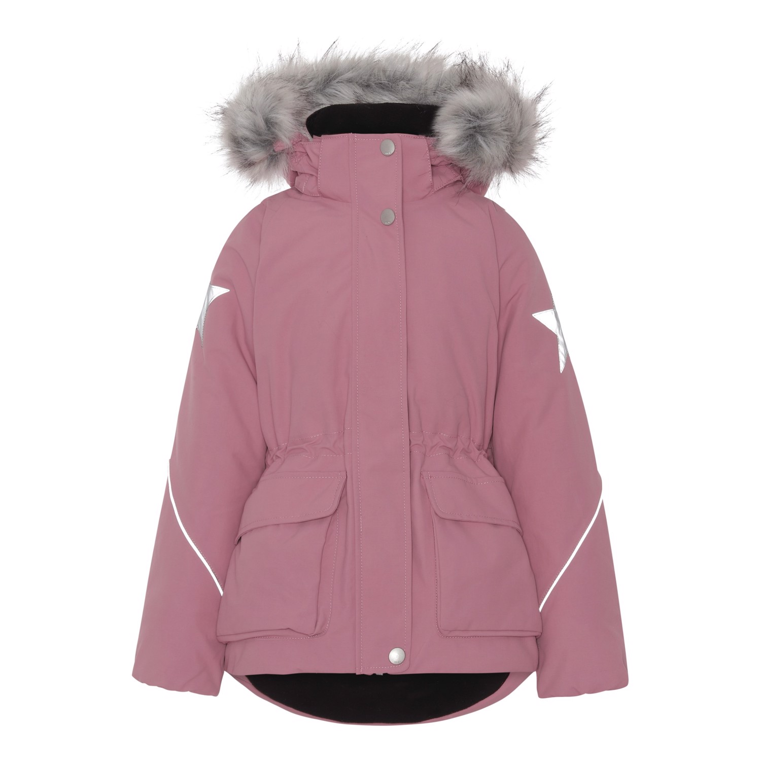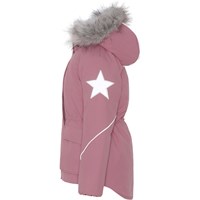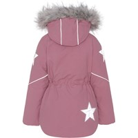 Cathy Fur is een lichtroze waterdichte winterjas. Cathy Fur is perfect voor extreem koude dagen maar ook voor gewone winterdagen. Het hoge ademende vermogen helpt bij het reguleren van de lichaamstemperatuur van het kind, zodat het niet te koud of oververhit raakt. Op warmere winterdagen kan het kind de jas met een dunne onderlaag dragen en op extreem koude dagen kan hij of zij een extra laag aantrekken. Cathy Fur is ook een goede keuze voor minder actieve momenten.De jas heeft een afneembare capuchon met rand van imitatiebont (ook afneembaar), een ritssluiting aan de voorkant, ruime zakken, verstelbare elastische taille en Molo's iconische sterreflectoren op de achterkant. De jas is gemaakt van wind-, waterdichte en ademende materialen. De buitenstof is gemaakt van 59% gerecycled nylon, de 3M™ Thinsulate™ voering is gemaakt van 78% gerecycled polyester en de binnenstof is gemaakt van 100% gerecycled polyester. Dit product heeft een waterbestendige, PFC-vrije oppervlaktebehandeling (Bevat bijvoorbeeld geen PFOS, PFOA, etc). Waterkolomdruk: 15.000 mm. Ademend: 15.000 g/m2/24u