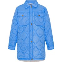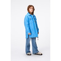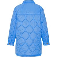 Blauwe doorgestikte waterafstotende jas met een klassieke rechte kraag. Het heeft op de borst grote zakken met kleppen en drukknopen, discrete zijzakken en een verborgen ritssluiting aan de voorkant met windflap en drukknopen. De jas heeft zijsplitten voor bewegingsvrijheid en De jas is behandeld met een water- en vuilafstotende coating die geen chemicaliën bevat zoals PFOS, PFOA etc.
