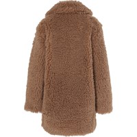 Haili is een zachte, lichtbruine teddy jas met kraag die omhoog of omlaag gedragen kan worden. De jas heeft drukknopen.