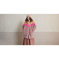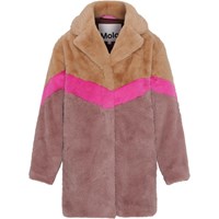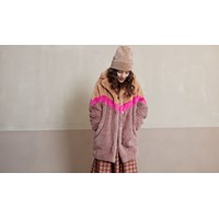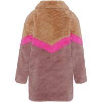 Haili is een zachte imitatie bontjas in een prachtige kleurencombinatie van bruin en lichtroze met een roze streep over de borst. De kraag kan omhoog of omlaag worden geklapt. Het heeft een drukknoop sluiting.