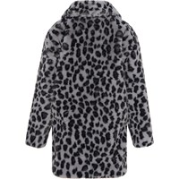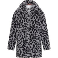 Haili is een zachte imitatie bontjas in een grijze luipaardprint. De kraag kan omhoog of omlaag worden gedragen. Het heeft een drukknoop sluiting.