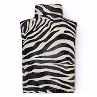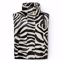Gevoerde bodywarmer met zebraprint van gerecycled polyester. De bodywarmer heeft een opstaande kraag en een rits met een flap. Het heeft ook grote armsgaten, waardoor er een jas of een dikke trui onder gedragen kan worden. De bodywarmer heeft voorzakken en een verstelbare elastiek aan de onderkant. De stof is waterafstotend en vrij van PFOS en PFOA.