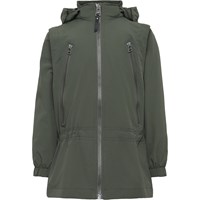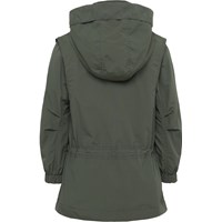 Halina is een legergroen parkajas met een afneembare capuchon en een ritssluiting aan de voorzijde. Het heeft een verstelbare taille en zakken aan de zijkant en op de borst. Dit product heeft een waterbestendige, PFC-vrije oppervlaktebehandeling (bevat geen, bijvoorbeeld PFOS, PFOA, enz).