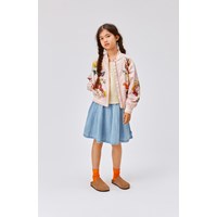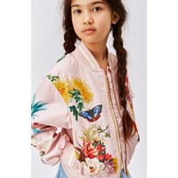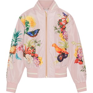 Haliva is een roze bomberjack met een prachtige print van exotische bloemen, dieren en fruit. Haliva heeft gestreepte ribboorden rond de hals, mouwen en onderkant. De jas is ook waterafstotend en PFC-vrij.