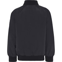 Zwart bomberjack met een rode en blauwe streep langs de ritssluiting aan de voorzijde. Het jack heeft ribstof bij de hals, mouwen en onderkant. Het is perfect als een overgangsjack en heeft een waterbestendige, PFC-vrije oppervlaktebehandeling (bevat geen, bijvoorbeeld PFOS, PFOA, enz.).