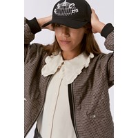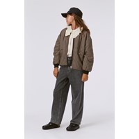 Quilted, gewatteerde bomberjas met een geruite print in bruine en blauwe tinten. De jas heeft een rits langs de voorkant, schuine zakken aan beide zijden en ribafwerking bij de armsgaten en kraag.
