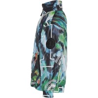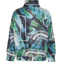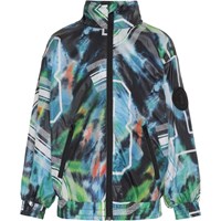 Hansel is een jas met een tie-dye print met cijfers. De jas heeft een hoge kraag, een zwarte ritssluiting en voorzakken.