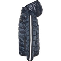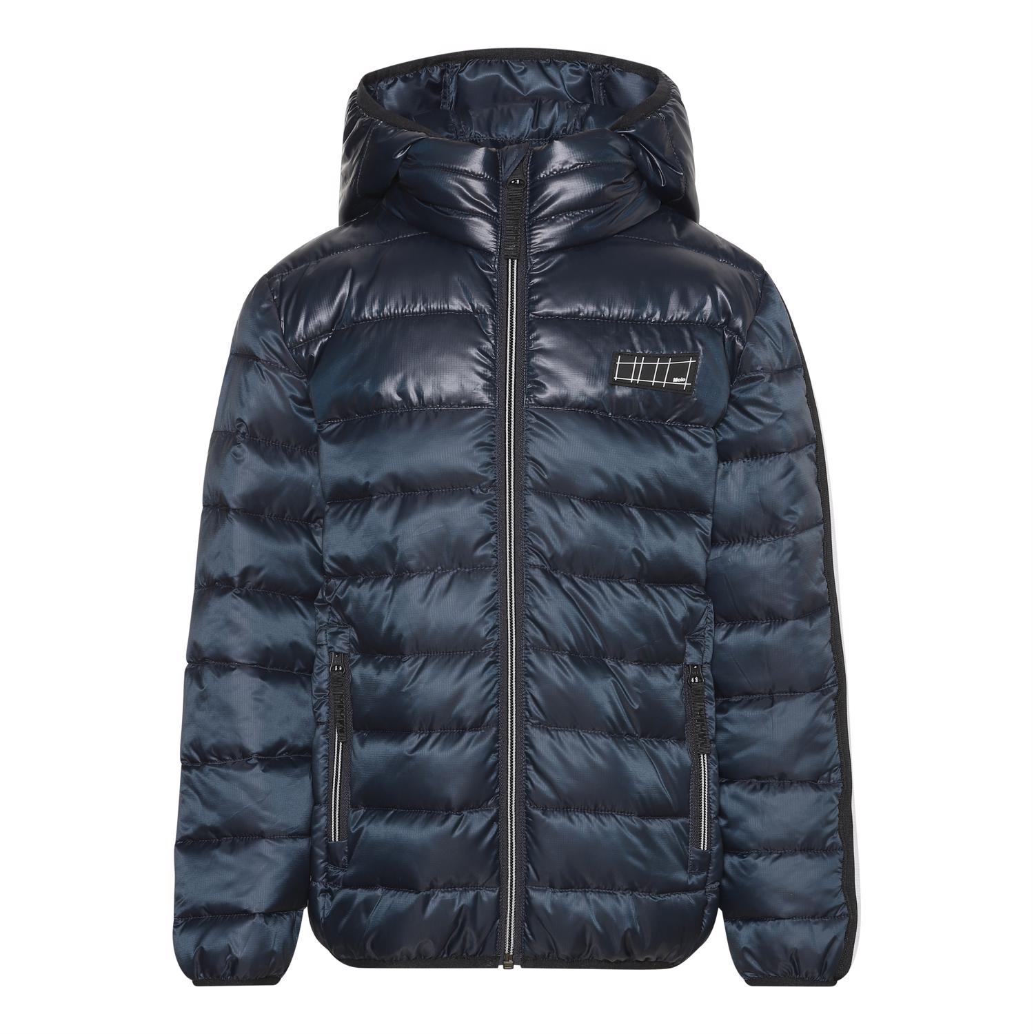 Hao is een blauwe winterjas met een gestreepte ritssluiting en een streep over de mouwen. De voering is gerecycled en gemaakt van gerecycled polyester. De voering voelt extra zacht en donsachtig aan en houdt warmte vast. Het buitenmateriaal heeft een waterafstotende, PFC-vrije oppervlaktebehandeling (bevat bv.geen PFOS, PFOA, enz.).