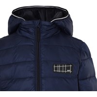 Hao is een donkerblauwe winterjas met een zwarte ritssluiting en ritszakken. Het heeft een afneembare capuchon en is gevoerd met parelvulling, waardoor het extra zacht is en warmte vasthoudt, terwijl het een donsachtig gevoel geeft. De buitenstof heeft een waterbestendige, PFC-vrije oppervlaktebehandeling (bevat geen PFOS, PFOA, enz.).