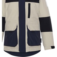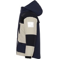 Harding is een beige, zwarte en blauwe jas. Het heeft grote zakken aan de voorkant en een afneembare capuchon en grote reflectoren aan de zijkant en achterkant. De jas is wind- en waterdicht en heeft een ademend membraan en getapete naden bij de kraag, armsgaten en schouders. De buitenstof is 100% gerecycled en gemaakt van gerecyclede plastic flessen. De buitenstof heeft een waterafstotende, PFC-vrije oppervlaktebehandeling (bevat bv. geen PFOS, PFOA, enz.). Waterkolomdruk: 10.000 mm. ademend: 8.000 g / m2 / 24 uur.