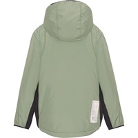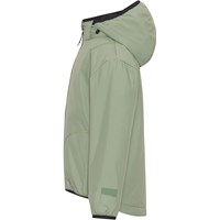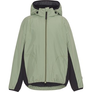 Licht gewatteerd groene windjas met een zwarte contrastkleur. De jas is gemaakt van een softshell-materiaal met een afneembare capuchon, twee voorzakken en een reflector op de achterkant. Aan de onderkant is hij verstelbaar. De jas is zeer zacht en door zijn lichtgewicht kan hij gemakkelijk in de capuchon worden opgerold, waardoor hij gemakkelijk mee te nemen is in bijvoorbeeld een schooltas. Dit product heeft een waterbestendige, PFC-vrije oppervlaktebehandeling (Bevat bijvoorbeeld geen PFOS, PFOA, etc).