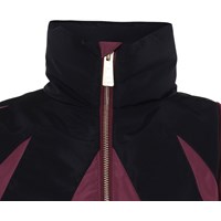 Harmoney is een bordeaux rode winter bomberjack. Het heeft een opgenaaide zwarte kraag die als bloembladen over de schouders gaan. De jas is gemaakt van 100% gerecycled polyester. Dit product heeft een waterbestendige, PFC-vrije oppervlaktebehandeling (bevat geen PFOS, PFOA, enz.).