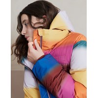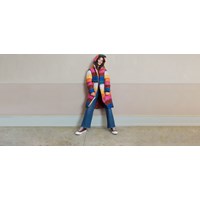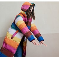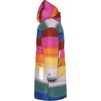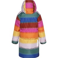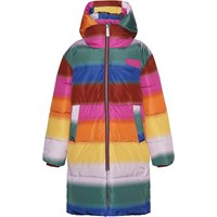 Harper is een heerlijk warme lange jas in een regenboogprint. De buitenstof is 51% gerecycled en de voering en tussenvoering zijn 100% gerecycled van gerecycled polyester. Het heeft een capuchon, ritszakken aan de voorkant en een reflector aan de achterkant. De jas is gevoerd met pearl padding, waardoor het extra zacht is, warmte vasthoudt en een donsachtig gevoel geeft. De buitenstof heeft een waterafstotende, PFC-vrije oppervlaktebehandeling (bevat bijvoorbeeld geen PFOS, PFOA, enz.).