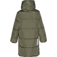 Harper is een heerlijk groene warme lange jas. De buitenstof is 51% gerecycled en de voering en tussenvoering zijn 100% gerecycled van gerecycled polyester. Het heeft een capuchon, ritszakken aan de voorkant en een reflector aan de achterkant. De jas is gevoerd met pearl padding, waardoor het extra zacht is, warmte vasthoudt en een donsachtig gevoel geeft. De buitenstof heeft een waterafstotende, PFC-vrije oppervlaktebehandeling (bevat bijvoorbeeld geen PFOS, PFOA, enz.).
