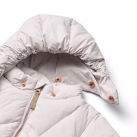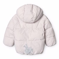 Waterafstotende paarse jas voor de kleintjes gemaakt van gerecycled nylon. De jas heeft een afneembare capuchon, een rits aan de voorkant, gevoerde zakken en elastiek rond de polsen en onderkant om de warmte vast te houden. Bovendien heeft de jas een vulling van gerecycled polyester die zorgt voor constante zachtheid en optimale thermische isolatie en het waterafstotende oppervlak is vrij van PFOS en PFOA.