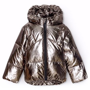 Stoere zilveren jas voor baby's en peuters. De jas heeft een afneembare capuchon, rits en zakken aan de voorkant, evenals een elastiek aan de mouwopening en onderkant, wat helpt om je kind warm te houden.