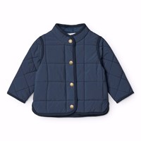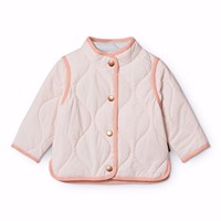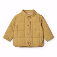 Kaki-kleurige waterafstotende thermische jas van gerecycled nylon met gewatteerd patroon. De jas heeft een normale pasvorm, zijzakken, knoopsluiting aan de voorkant en bijpassende biezen, wat zorgt voor een stijlvolle afwerking.