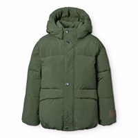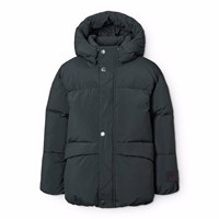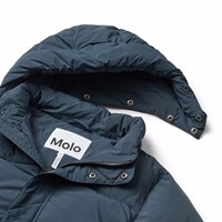 Blauwe waterafstotende jas gemaakt van gerecycled nylon. De jas heeft een afneembare capuchon en een rits met een flap die sneeuw, wind en regen buiten houdt. Het heeft voorzakken en elastische manchetten om de wind buiten te houden. De jas is gevoerd met gerecyclede polyester vulling, wat zorgt voor een gelijkmatige zachtheid en optimale thermische isolatie. Kenmerken: Wind- en waterbestendig. Waterkolomdruk: 5.000 mm. Ademend vermogen: 3.000 g/m2/24u. PFC-vrij (PFOS en PFOA).