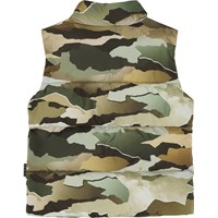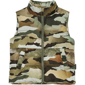 Heike is een bodywarmer in een camouflage print. Het is gevoerd met technisch dons, wat pearl padding heet, waardoor het extra zacht is, warmte vasthoudt en aanvoelt als dons. Dit product heeft een waterbestendige, PFC-vrije oppervlaktebehandeling (Bevat bijvoorbeeld geen PFOS, PFOA, etc). Waterkolomdruk: 5.000 mm. Ademend: 5.000 g/m2/24u.
