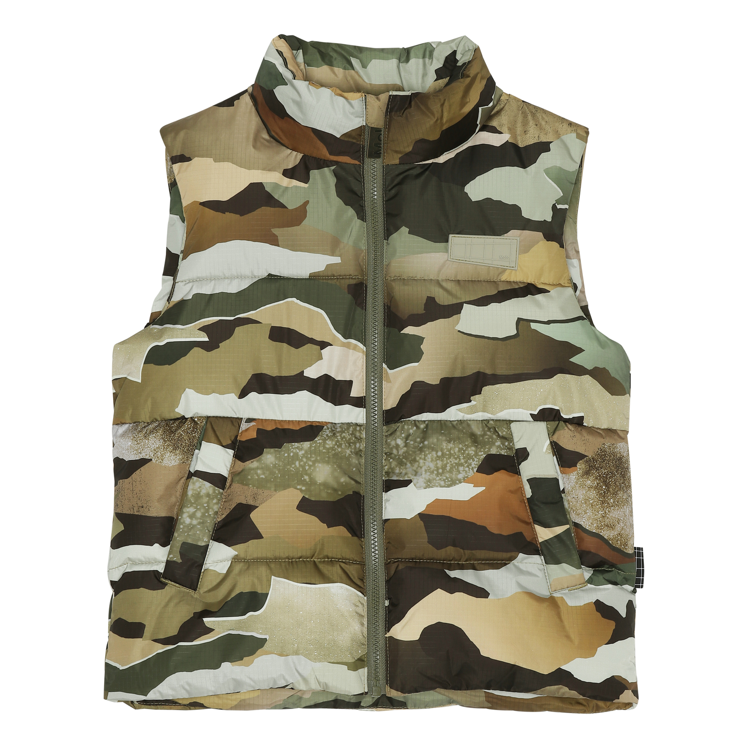 Heike is een bodywarmer in een camouflage print. Het is gevoerd met technisch dons, wat pearl padding heet, waardoor het extra zacht is, warmte vasthoudt en aanvoelt als dons. Dit product heeft een waterbestendige, PFC-vrije oppervlaktebehandeling (Bevat bijvoorbeeld geen PFOS, PFOA, etc). Waterkolomdruk: 5.000 mm. Ademend: 5.000 g/m2/24u.