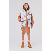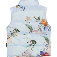 Heike is een lichtblauwe bodywarmer met bloemenprint. Het is gevoerd met technisch dons, wat pearl padding heet, waardoor het extra zacht is, warmte vasthoudt en aanvoelt als dons. Dit product heeft een waterbestendige, PFC-vrije oppervlaktebehandeling (Bevat bijvoorbeeld geen PFOS, PFOA, etc). Waterkolomdruk: 5.000 mm. Ademend: 5.000 g/m2/24u.