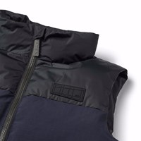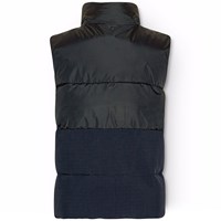 Warme bodywarmer van gerecycled polyester voor koudere dagen in donkerblauwe tinten. De bodywarmer heeft een opstaande kraag, een ritssluiting aan de voorkant en grote armsgaten, zodat er een jas of dikke trui onder gedragen kan worden. Het heeft grote reflectoren aan de achterkant om de zichtbaarheid in het verkeer te vergroten, evenals een verstelbare elastiek aan de onderkant om de wind buiten te houden.