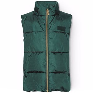 Zeegroene bodywarmer van gerecycled polyester voor koudere dagen. De bodywarmer heeft een opstaande kraag, een ritssluiting aan de voorkant en grote armsgaten, zodat er een jas of dikke trui onder gedragen kan worden. Het heeft grote reflectoren aan de achterkant om de zichtbaarheid in het verkeer te vergroten, evenals een verstelbare elastiek aan de onderkant om de wind buiten te houden.