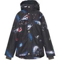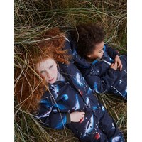 Unisex winterjas die perfect is voor dagelijks gebruik voor een actief kind. De winterjas heeft veel geweldige eigenschappen, zoals een hoge waterkolomdruk en ademend vermogen om een kind warm en droog te houden in de koude maanden. Het maakt deel uit van Molo's 'Outdoor Proof’ collectie, wat buitenkleding is voor meer gematigde winters, waarbij we niet diep onder het vriespunt zakken. De Heiko winterjas voldoet aan Molo's hoge normen voor buitenkleding met dezelfde functionele details en kwaliteitsmaterialen waar Molo het meest bekend om staat. De jas is natuurlijk geproduceerd in verantwoord gerecyclede materialen. Deze Heiko is in het donkerblauw met planeten erop.