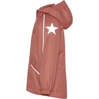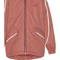 Heiko is Molo's nieuwe unisex jas in een roze kleur. De jas heeft reflecterende biezen en Molo's iconische sterreflectoren aan de voor- en achterkant. De jas kan worden ingesnoerd met koordjes in de taille om een mooiere pasvorm te creëren. Heiko is ademend, wind- en waterdicht en heeft getapete naden. De voering en de tussenvoering zijn 100% gerecycled en gemaakt van gerecyclede plastic flessen. Dit product heeft een waterbestendige, PFC-vrije oppervlaktebehandeling (bevat bv. geen PFOS, PFOA, enz.). Waterkolomdruk: 12.000 mm en ademend: 8.000 g / m2 / 24 uur.