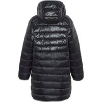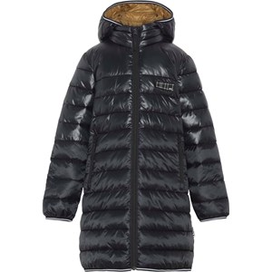 Helin is een lange zwarte jas met een afneembare capuchon. Het heeft een ritssluiting en zakken met een rits aan de voorzijde. De jas is gevoerd met gerecyclede pearl padding die extra zacht en donsachtig aanvoelt en warmte vasthoudt.