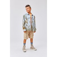 Heni is een lichtblauw spijkerjas in een groene tie-dye. Heni heeft twee borstzakken met knopen en zijzakken. Op de achterkant linksonder zit een bruin leren Molo logo.